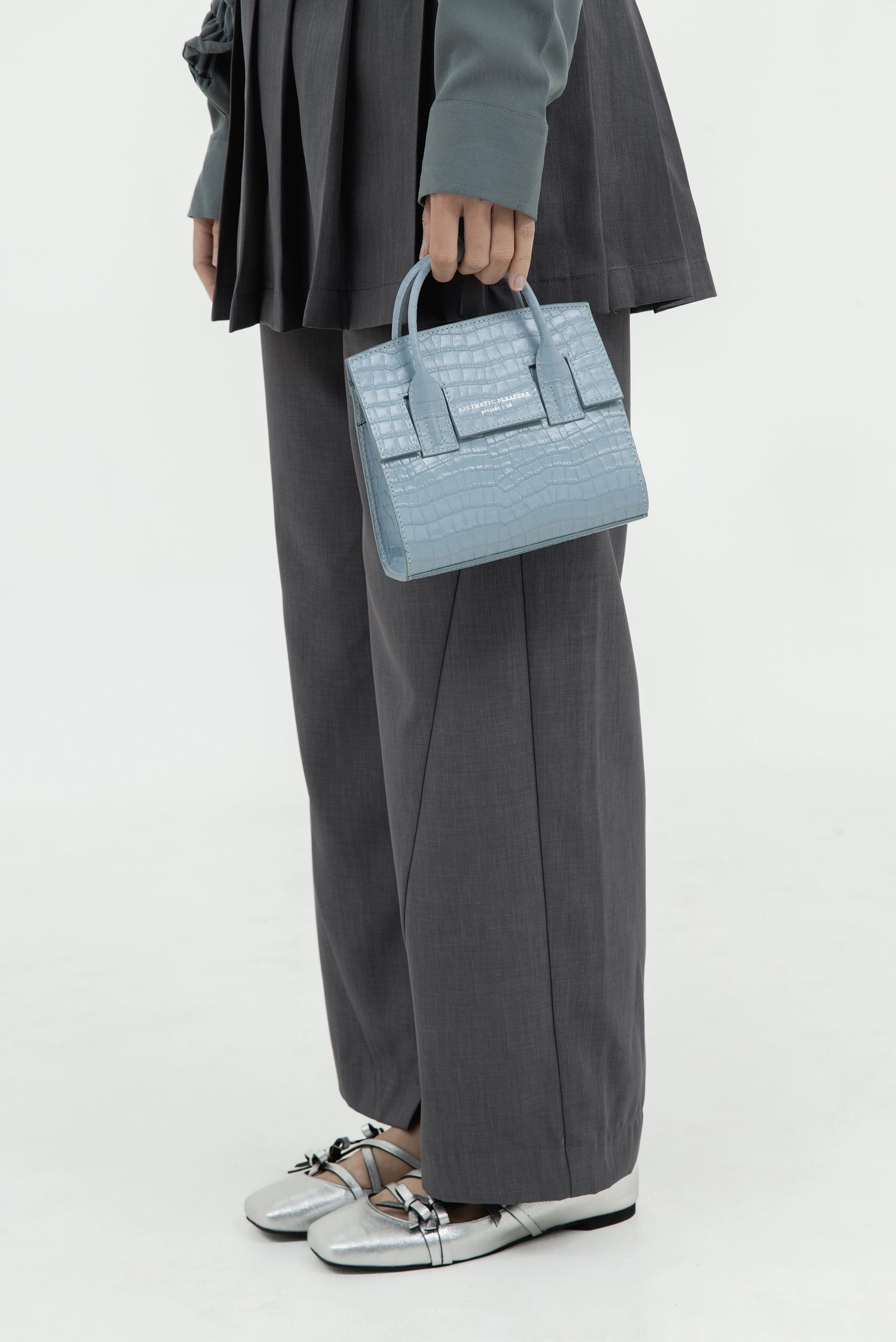 A tiny size version of the Isolation bag fits your phone, lipstick, and small wallet Top tubular handle Logo stamp in front Ring handle with snap button Main compartment Zip closure Detachable & adjustable strap with snap hook Silver-tone hardware Cotton lining 100% Cow leather Made in Indonesia