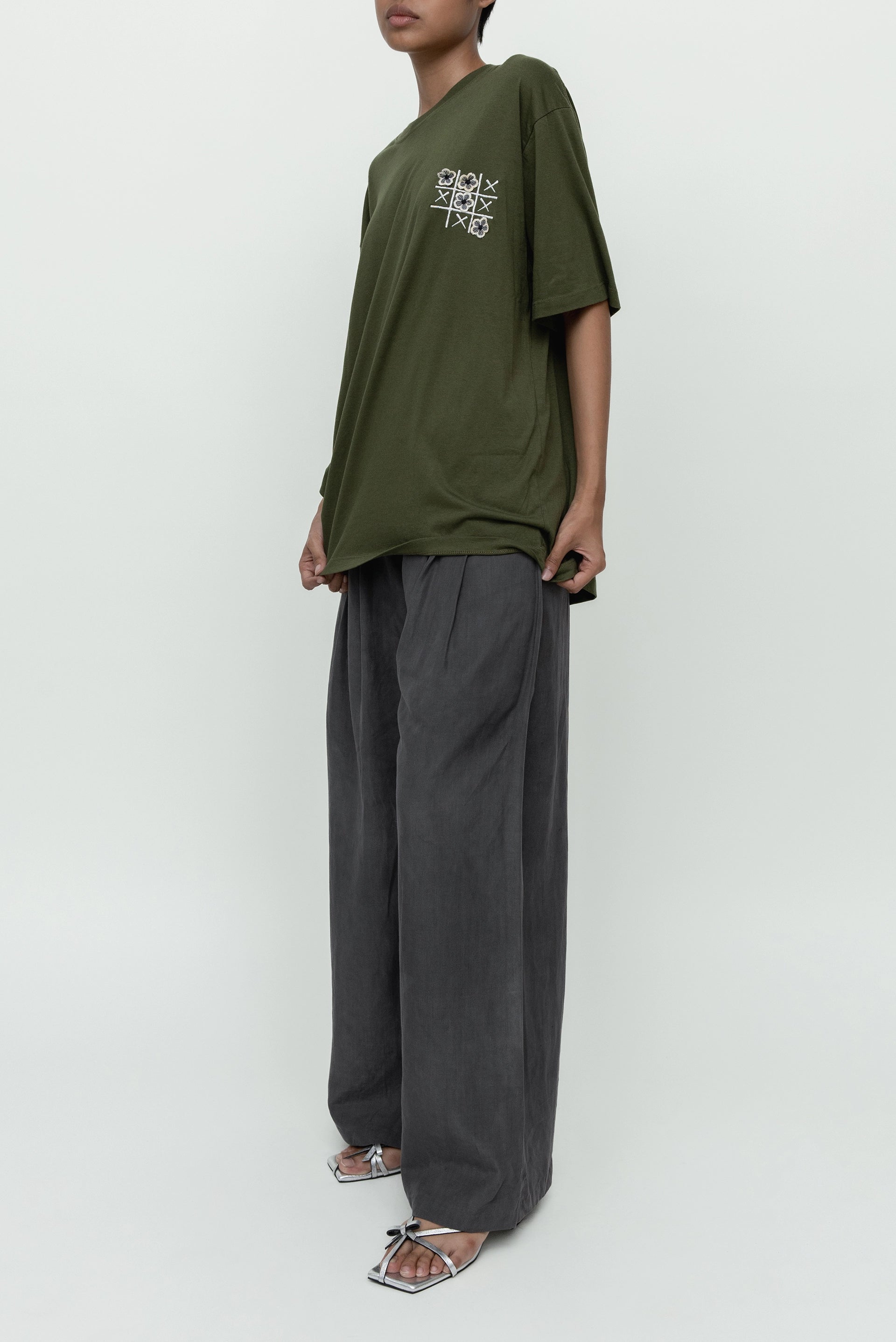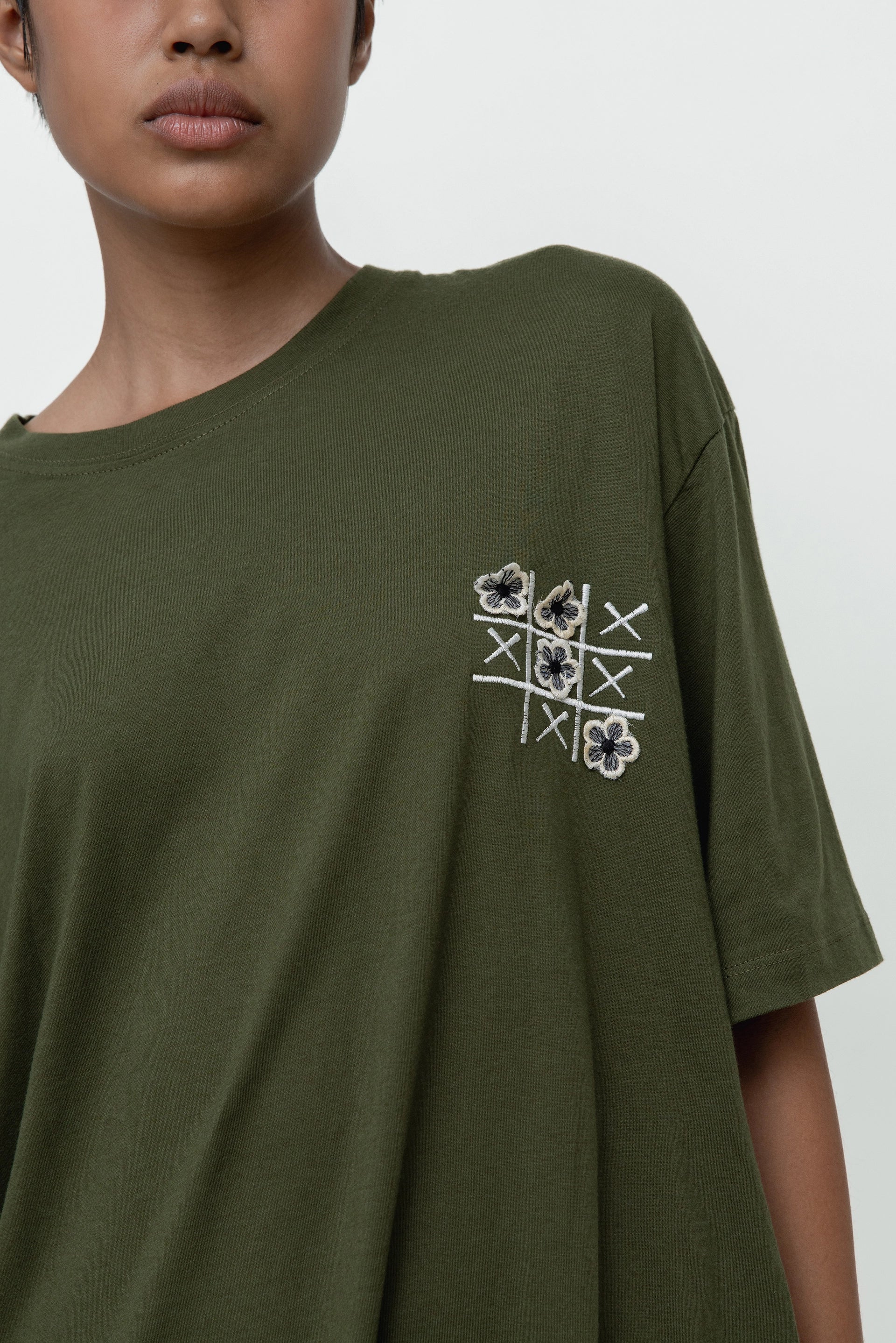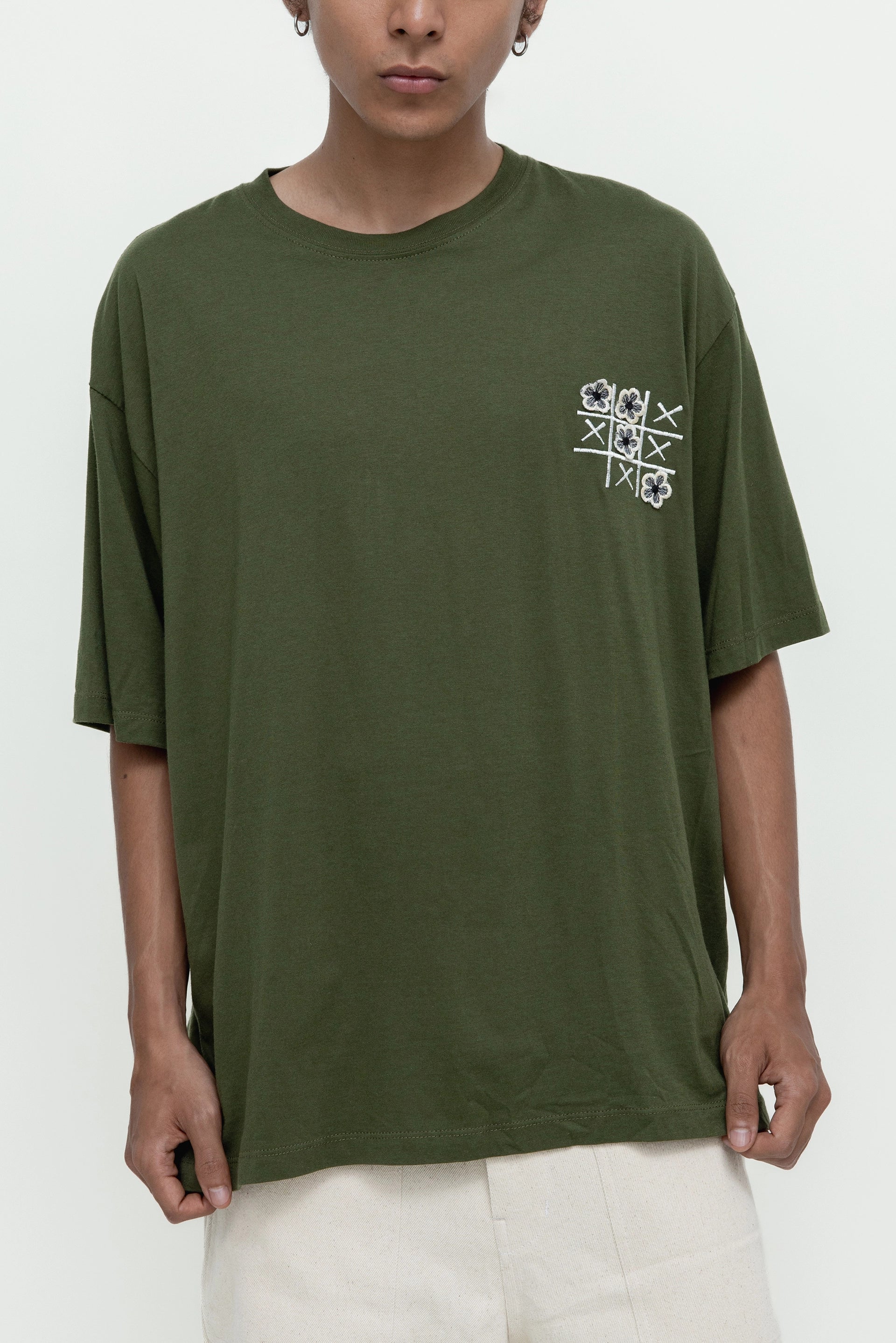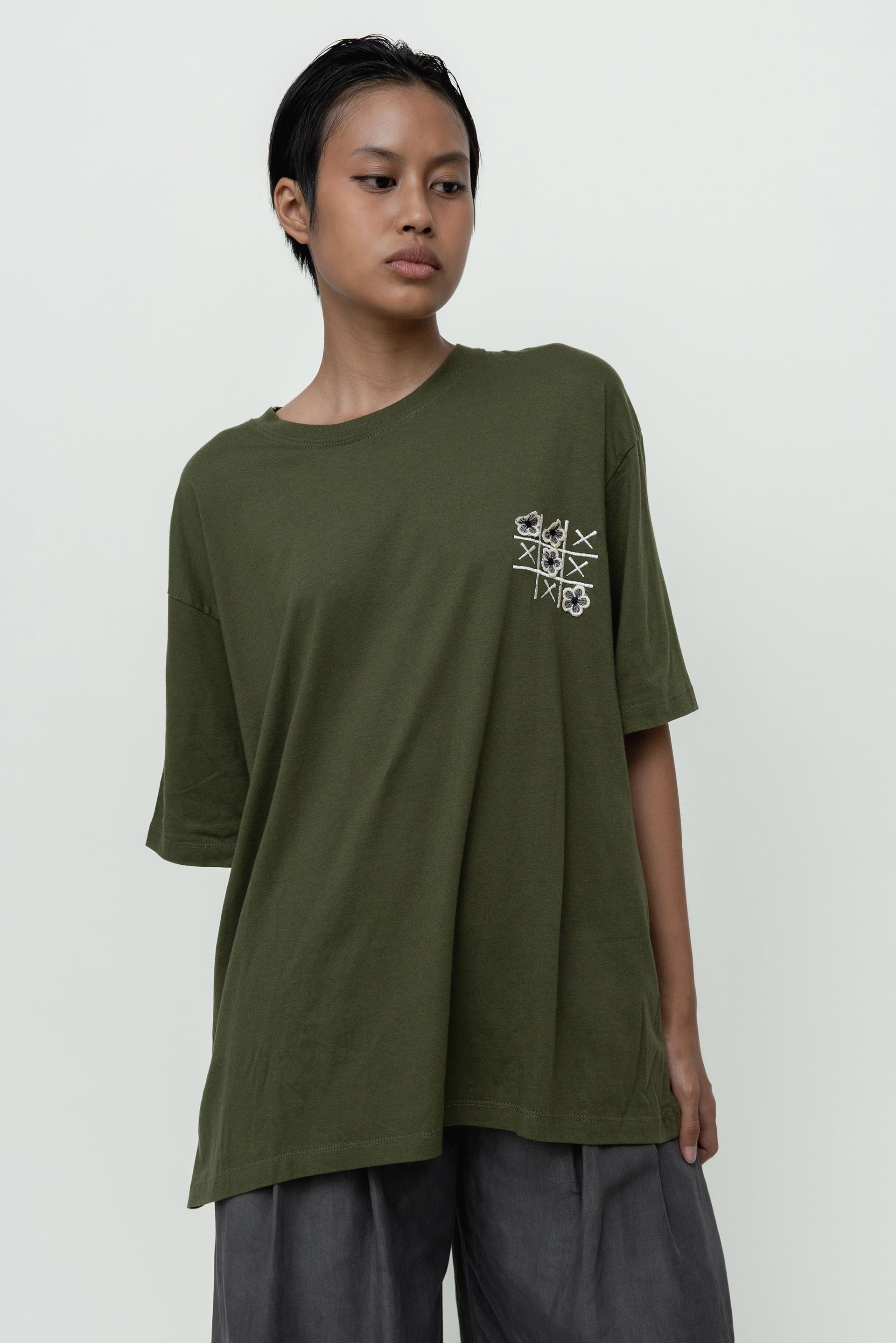 The Tanah Le Sae T-shirt takes inspiration from the childhood game Tic Tac Toe, reflected through its unique embroidered detailing.